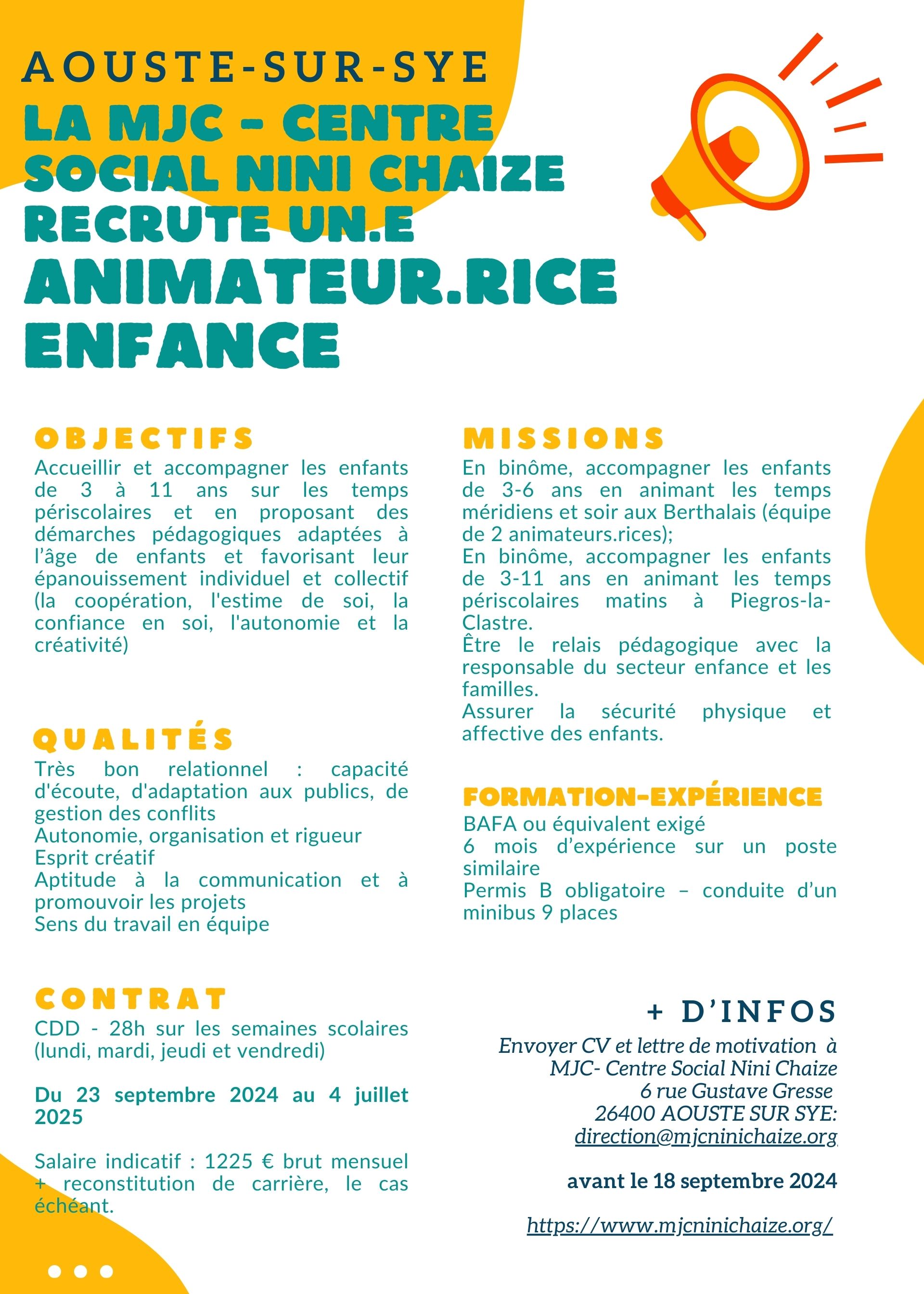 Animateur.rice d’activités périscolaires – CDD – H/F – Aouste-sur-Sye – Drôme (26)