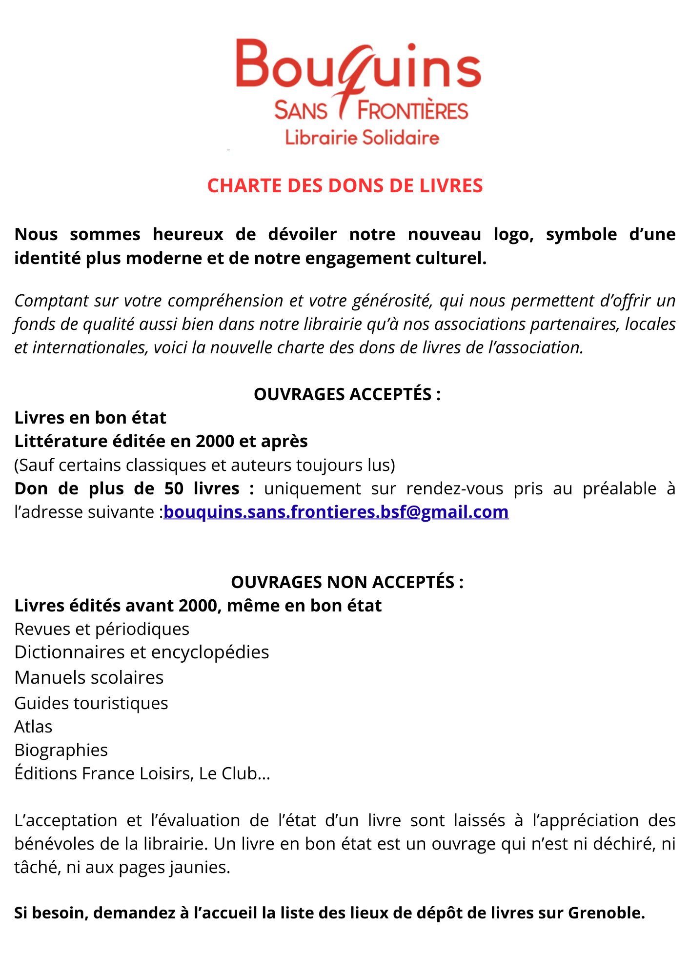 – Réception des vos dons de livres